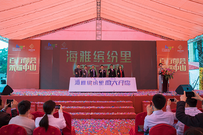 下午一点半,一场震撼非凡的开场鼓舞表演为开盘活动拉开了帷幕,海雅集团一众领导上台参加了开盘启动仪式。紧接着,海雅集团副总裁涂尔鹏先生上台作开盘致辞,他详细地为大家介绍了海雅缤纷城商业体作为中山北城市新坐标,耗资近80亿打造约120万平的都荟综合体将是中山未来最大商业坐标。海雅集团拥有超二十载成熟商业运营经验,秉持着自运营的理念,不仅为所在区域带来了颇高的价值收益,更为城市发展带来不少商业机遇。除此以外,海雅缤纷里公寓空间设计出自香港知名室内设计之父高文安之手,全屋品牌装修,拎包入住,轻松坐享湾区成长型资产。